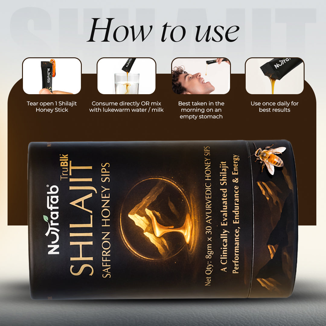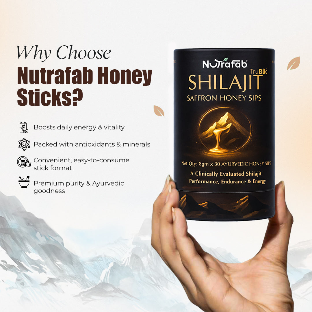 Discover the power of ancient Ayurveda in convenient stick form. Each Nutrafab Shilajit Saffron Honey Stick combines pure shilajit, premium saffron, and raw honey to deliver sustained energy and vitality throughout your day. Perfect for on-the-go wellness, these portable sticks require no mixing or preparation—simply consume and feel revitalized. Shilajit supports stamina and mental clarity, while saffron enhances mood and cognitive function. The natural sweetness of honey provides quick energy without refined sugars. Ideal for busy professionals, travelers, and fitness enthusiasts seeking a natural energy boost rooted in traditional Ayurvedic wisdom.